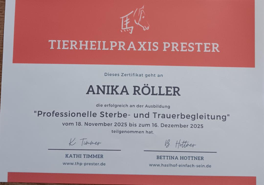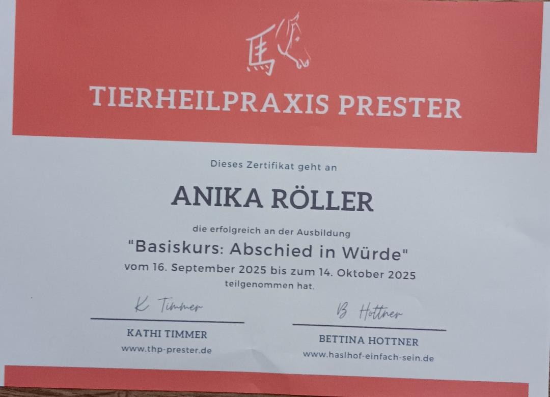 •10. Feb bis 10. März 2026 „Begleitende Unterstützung für Tiere am Lebendsende“ bei der THP Prester