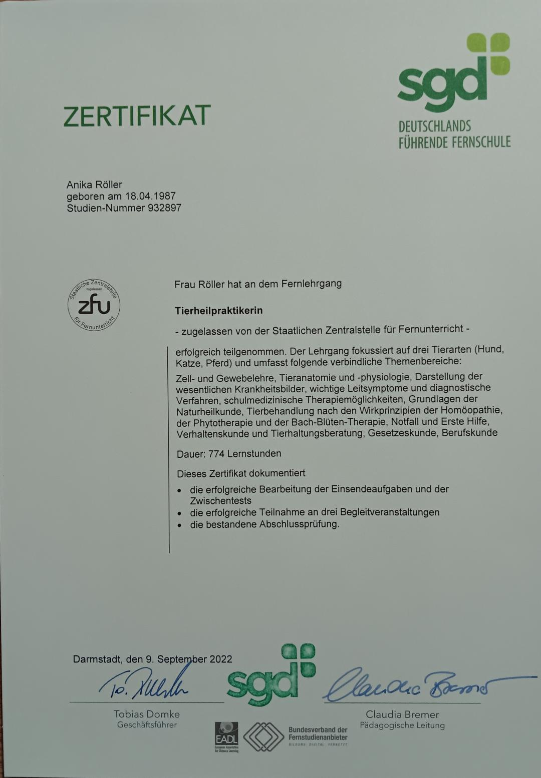 Die Nachweise der Seminare können alle auf Wunsch eingesehen werden.